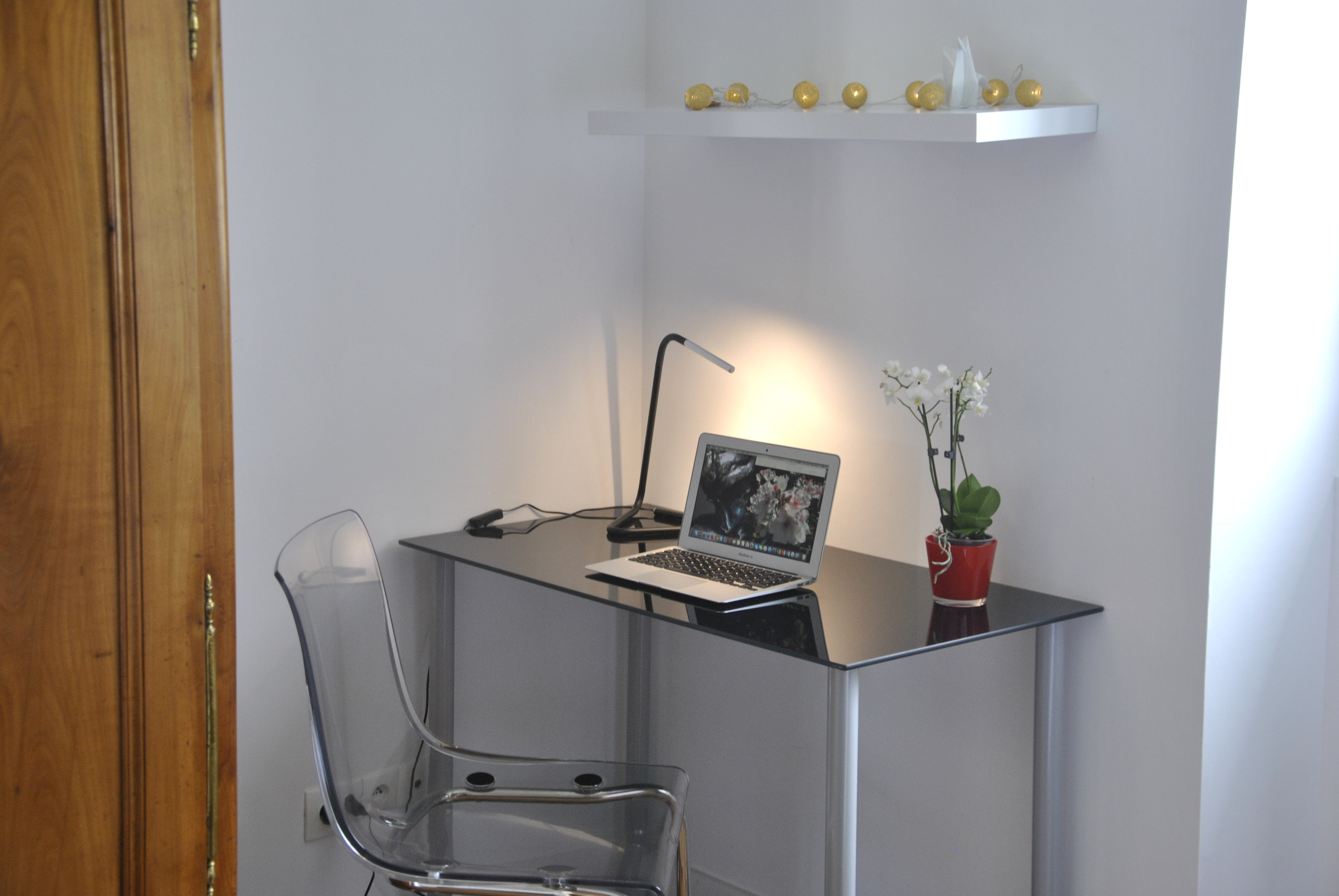 Situé dans la chambre, un bureau est à votre disposition pour profiter de la connexion internet (fibre optique haut débit) ou pour travailler