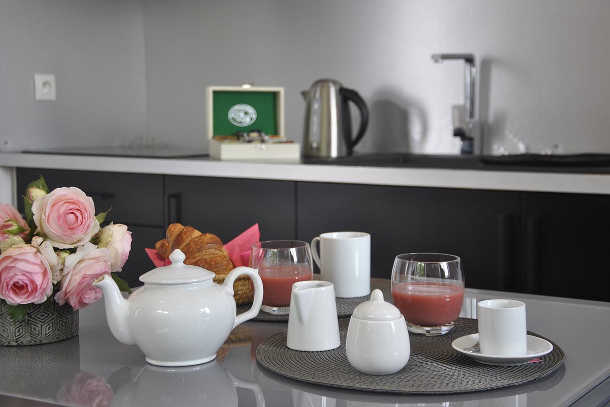Kit de bienvenue : sel, poivre, dosettes cafés, thé, sucre, produits ménagers…