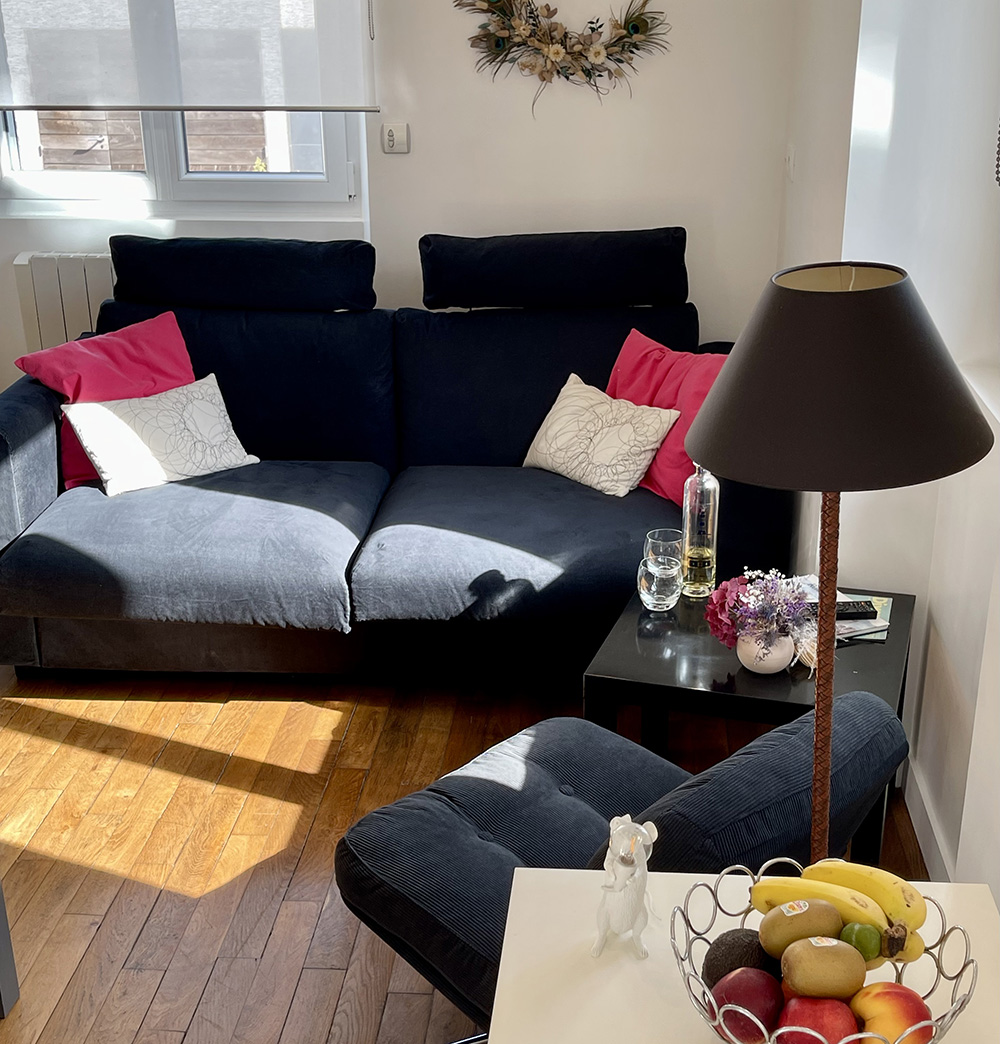 Avec son parquet chaleureux, une décoration sobre et actuelle,  un canapé convertible et un petit fauteuil , tout est fait pour créer une ambiance conviviale et accueillante.