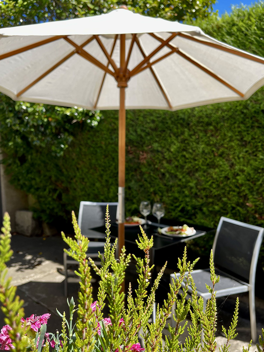 Profitez pleinement aux beaux jours de la petite cour ensoleillée pour savourer vos repas en plein air tout en restant au frais .